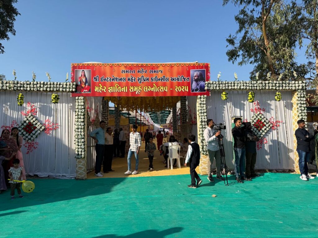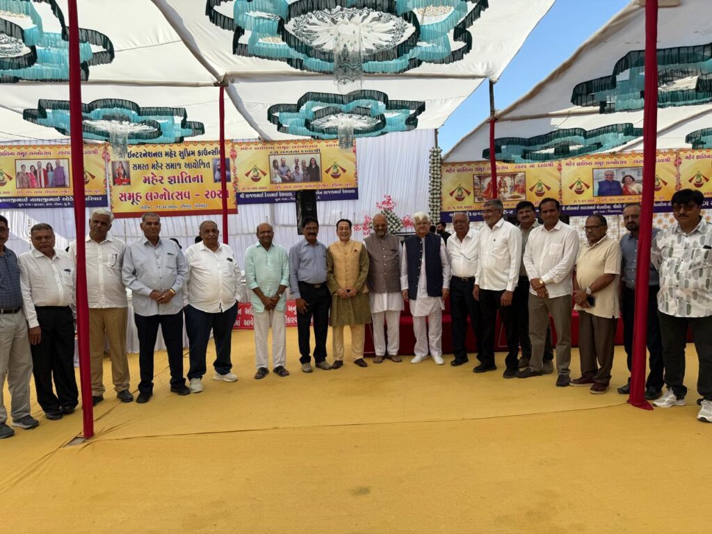 શ્રી ઇન્ટરનેશનલ મહેર સુપ્રીમ કાઉન્સિલ દ્વારા મહેર જ્ઞાતિનો ૨૪મો સમૂહ લગ્નોત્સવ પોરબંદર ખાતે તારીખ ૧૬ ફેબ્રુઆરી અને રવિવારના રોજ ભવ્ય રીતે યોજાઈ ગયો. સંસ્થાના પ્રમુખ શ્રી વિમલજીભાઈ ઓડેદરા ના અધ્યક્ષસ્થાને યોજાયેલ આ સમૂહ લગ્નમાં કુલ ૨૮ જેટલા નવદંપતીઓ લગ્નગ્રંથીથી જોડાયા હતા. મહેર મહિલા વિકાસ મંડળ પોરબંદરની બહેનો દ્વારા રેલાવવામાં આવેલ પ્રાચીન લગ્નગીતોની સુરાવલીઓ વચ્ચે આ સમગ્ર લગ્નની વિધિ સાંદિપની વિદ્યાનિકેતનના ગુરુજનો તથા ઋષિકુમારો દ્વારા શાસ્ત્રોક્ત વિધિથી કરવામાં આવી હતી. આ પ્રસંગે શ્રી ઇન્ટરનેશનલ મહેર સુપ્રીમ કાઉન્સિલના પ્રમુખશ્રી વિમલજીભાઈ ઓડેદરાએ પોતાના પ્રાસંગિક ઉદબોધનમાં લગ્નજીવનની માંગલ્યતાનો મર્મ સમજાવી આ પવિત્ર દિવસે લગ્નગ્રંથીથી જોડાયેલા તમામ નવ દંપતીઓને હૃદયપૂર્વકના આશીર્વાદ પાઠવી તેઓના શુભ લગ્નજીવનની કામના વ્યક્ત કરી હતી. આ ઉપરાંત શ્રી ઇન્ટરનેશનલ મહેર સુપ્રીમ કાઉન્સિલના તમામ વિભાગોના કાર્યો વિશેની વિગતવાર માહિતી પણ તેઓએ તેમના વ્યક્તવ્યમાં રજુ કરી હતી. સમુહ લગ્નના ખર્ચ અંગેની આવક જાવકની વિગત સંસ્થાના ખજાનચી શ્રી આલાભાઇ ઓડેદરા દ્વારા રજુ કરવામાં આવી હતી. આ પ્રસંગે સંસ્થાના પ્રમુખ શ્રી વિમલજીભાઈ ઓડેદરા, સંસ્થાના સ્થાપક પ્રમુખ શ્રી ડો. વિરમભાઈ ગોઢાણીયા, પોરબંદરના વર્તમાન ધારાસભ્ય શ્રી અર્જુનભાઈ મોઢવાડિયા, પૂર્વ સાંસદ શ્રી ભરતભાઈ ઓડેદરા, પૂર્વ કેબીનેટ મંત્રી શ્રી બાબુભાઈ બોખીરીયા, ભીમાભાઇ સવદાસભાઈ મોઢવાડિયા (યુ.એસ.એ.),આલાભાઇ ઓડેદરા, બચુભાઈ આંત્રોલીયા, જીતેન્દ્રભાઈ વદર, નવઘણભાઈ મોઢવાડિયા, અરજનભાઈ ખીસ્તરીયા, રામભાઈ મેપાભાઈ ઓડેદરા, કારાભાઈ કેશવાલા, અરશીભાઈ ખુંટી, સામતભાઈ ઓડેદરા, મસરીજીભાઈ ઓડેદરા, અરજનભાઈ બાપોદરા, દેવાભાઈ ભૂતિયા, ખીમભાઈ રાણાવાયા, દેવાભાઈ ઓડેદરા ભોજાભાઈ આગઠ, કેશુભાઈ ખુંટી, પૃથ્વીપાલભાઈ વિસાણા, પોપટભાઈ કેશવાલા, કેશુભાઈ વાઢેર, નાગાજણભાઈ ઓડેદરા, ડો. જીતેનભાઈ વાઢેર, જયેન્દ્રભાઈ ખુંટી, રાજુજીભાઈ ઓડેદરા, ભાવેશજીભાઈ ઓડેદરા, રામભાઈ કેશવાલા, બાબુભાઈ કારાવદરા,પરબતભાઈ કેશવાલા,રાયદેભાઈ મોઢવાડિયા, નાગેસભાઈ ઓડેદરા, પરબતભાઈ ઓડેદરા, અરજનભાઈ કેશવાલા, રાણાભાઈ શીડા, હમીરભાઈ ખીસ્તરીયા, ભરતભાઈ વાઢેર, ભીમાભાઈ ગોરસીયા, ભીમાભાઇ ઓડેદરા, કેશુભાઈ ગરેજા, પરબતભાઈ ઓડેદરા, દેવાભાઈ પરમાર, અરજનભાઈ ઓડેદરા, હરભમભાઈ કેશવાલા, રામભાઈ ઓડેદરા, વનરાજભાઈ કેશવાલા, કરશનભાઈ ભારવાડિયા, અશોકજીભાઈ ઓડેદરા, કેતનજીભાઈ ઓડેદરા, રાજભાઈ કુછડીયા, દુલાભાઈ ઓડેદરા, ગગુભાઈ પરમાર, મહેર શક્તિ સેનાના કરશનભાઈ ઓડેદરા અને રાણાભાઈ ઓડેદરા, અરજનભાઈ કડેગીયા, ભીમભાઈ મોઢવાડિયા, લીલાભાઈ મોઢવાડિયા, રાજદેભાઈ જાડેજા, આર્મી અટેક ગૃપનાં સભ્યો, સામતભાઈ સુંડાવદરા, ભી